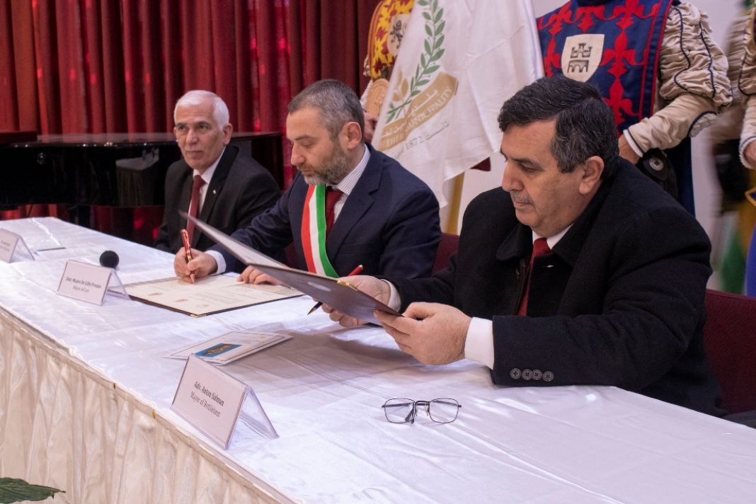 وقع رئيس بلدية بيت لحم المحامي أنطون سلمان ورئيس بلدية كوري الإيطالية الدكتور ماورو دي ليليس بريميو اليوم الجمعة الموافق 15-2-2019 في مركز السلام بيت لحم على وثيقة إعلان النوايا للتوقيع على اتفاقية توأمة قريباً بين المدينتين، وذلك بحضور محافظ بيت لحم السيد كامل حميد وشخصيات إعتبارية سياسية ومجتمعية ودينية مختلفة وأعضاء المجلس البلدي ومدير عام البلدية السيد أنطون مرقص.