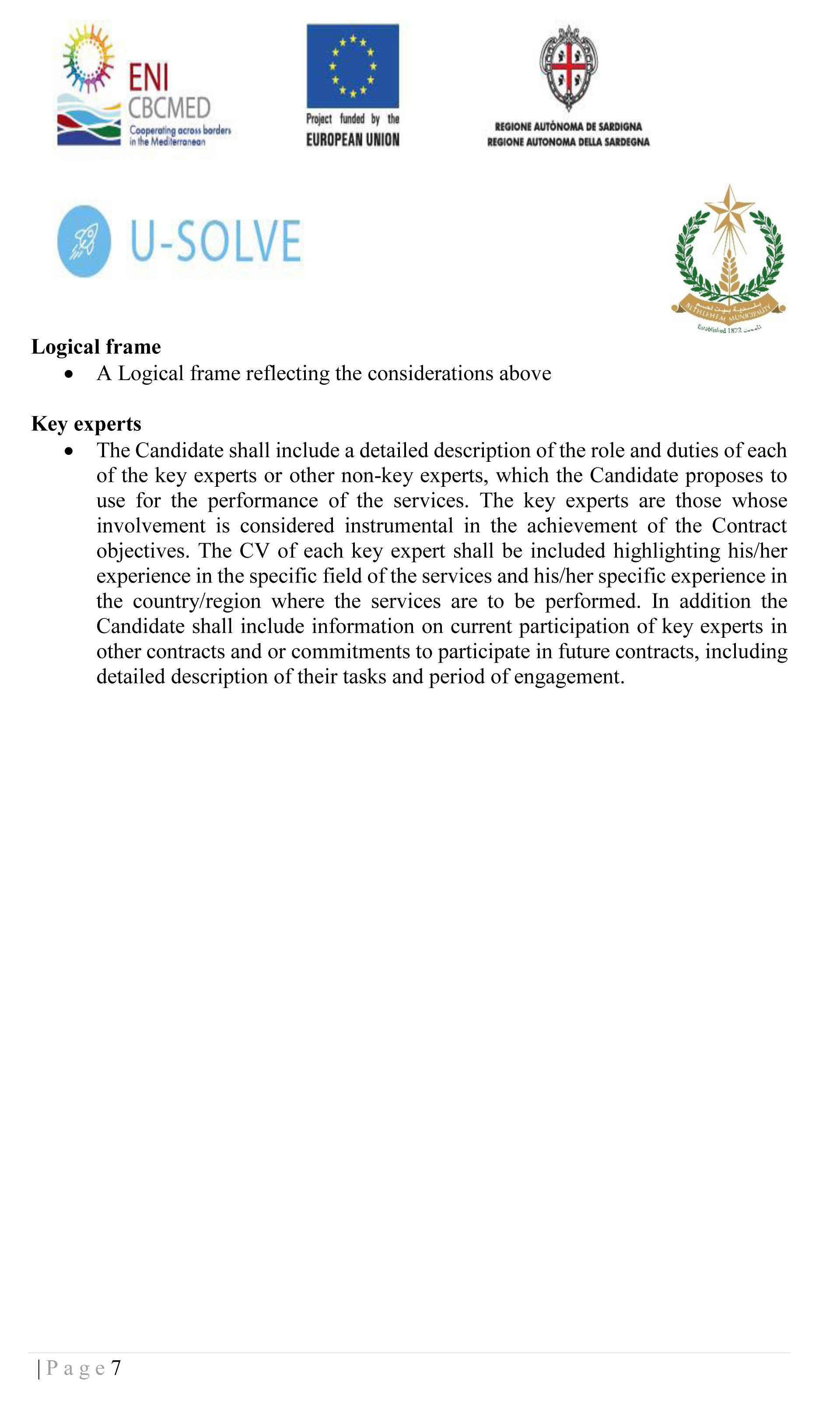 Bethlehem Municipality (BM) among other partner has received a Grant from the European Union under the umbrella of ENI CBC MED funding for a 30 months project entitled: U-Solve. Accordingly, BM intends to apply part of this grant for the outsourcing and contracting of a highly qualified External Auditor.
