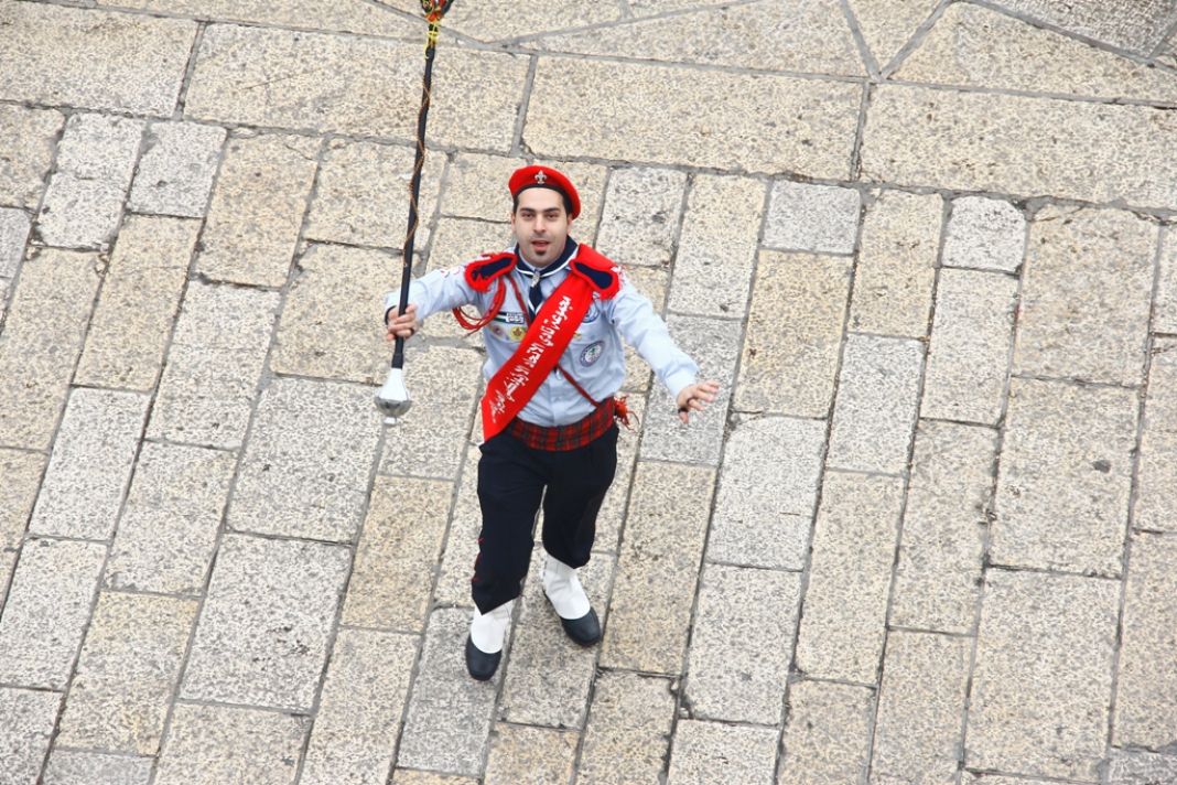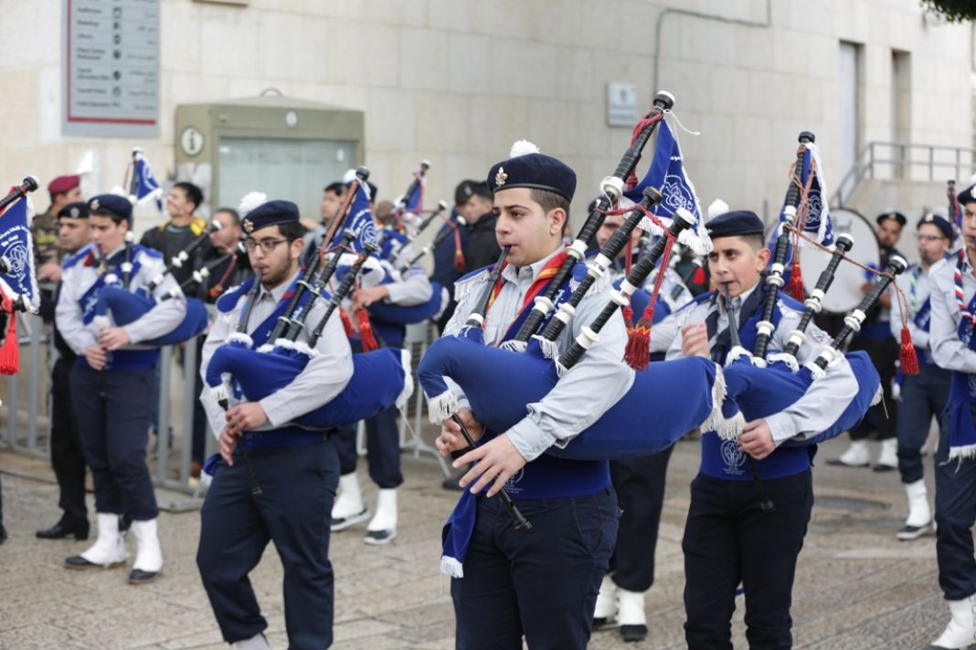 وكان قد إنطلق موكب غبطته من بطريركية اللاتين في القدس، وقبل وصوله إلى ساحة المهد تقدم الموكب الفرق الكشفية التي بلغ عددها 25 مجموعة من محافظات فلسطينية مختلفة ضمت ما يزيد عن 3150 فردا كشفيا.
