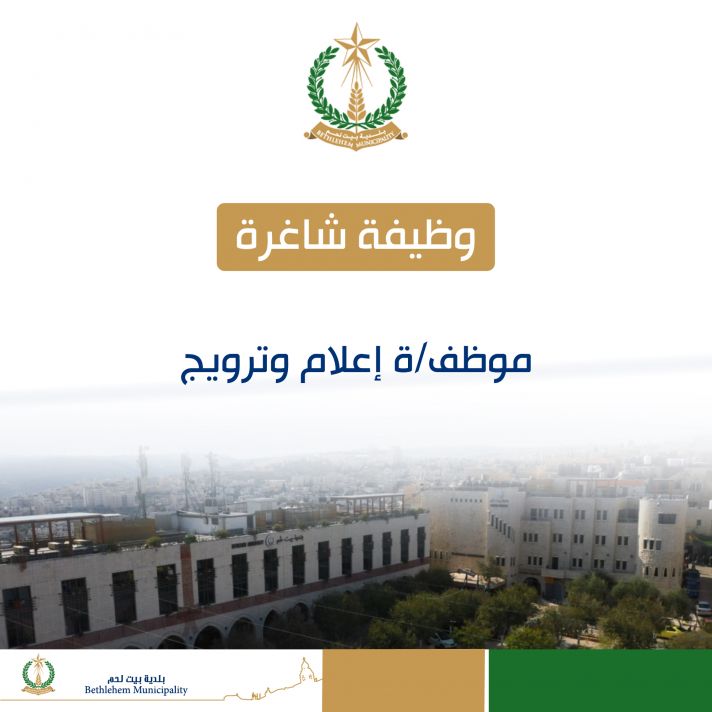 يعلن مجلس بلدية بيت لحم عن حاجته لشغل وظيفة موظف/ة إعلام وترويج ضمن دائرة العلاقات العامة في بلدية بيت لحم وفقاً للمواصفات التالية :